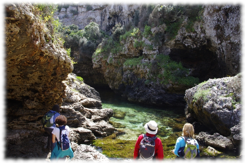 A la costa sud, les nostres caminades es van omplir de màgia. Les captivadores cales i platges, envoltades de boscos que vibraven amb el cant dels ocells, ens oferien una experiència única. Les aigües cristal·lines amb tonalitats canviants ens fascinaven, mentre l’aire primaveral feia brillar la mar amb una llum especial. Contemplar l’horitzó infinit ens regalava una pau serena, gairebé palpable, enmig d’un esclat de bellesa natural.