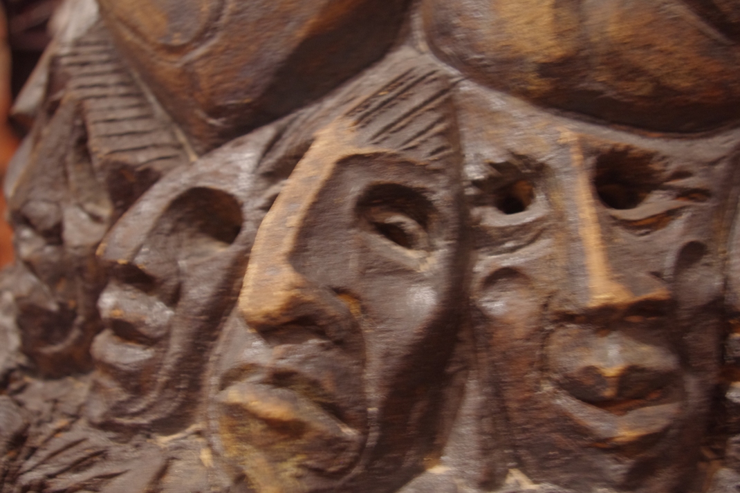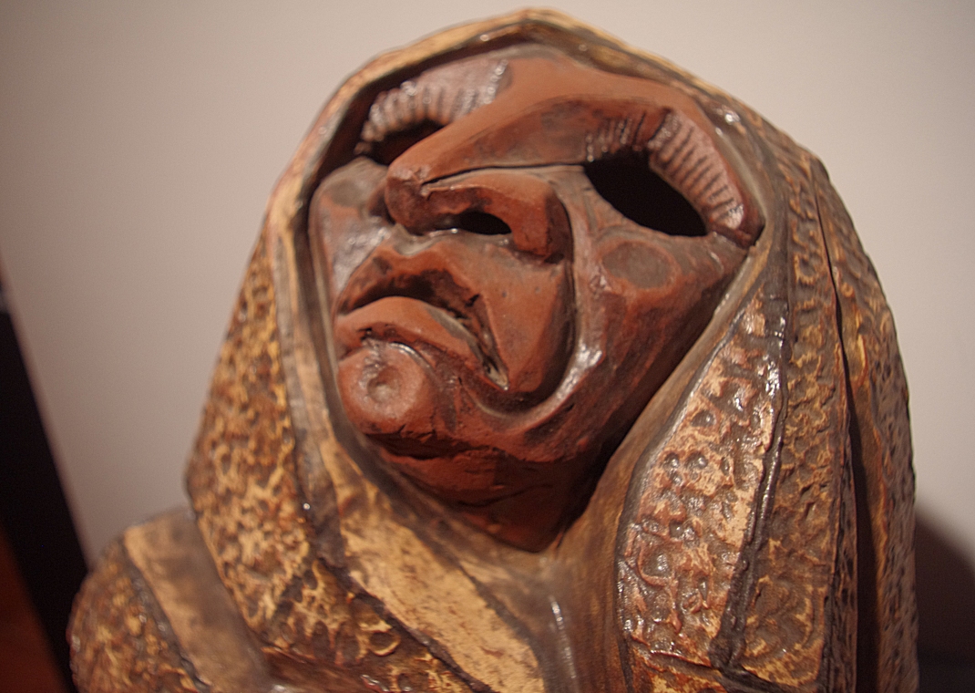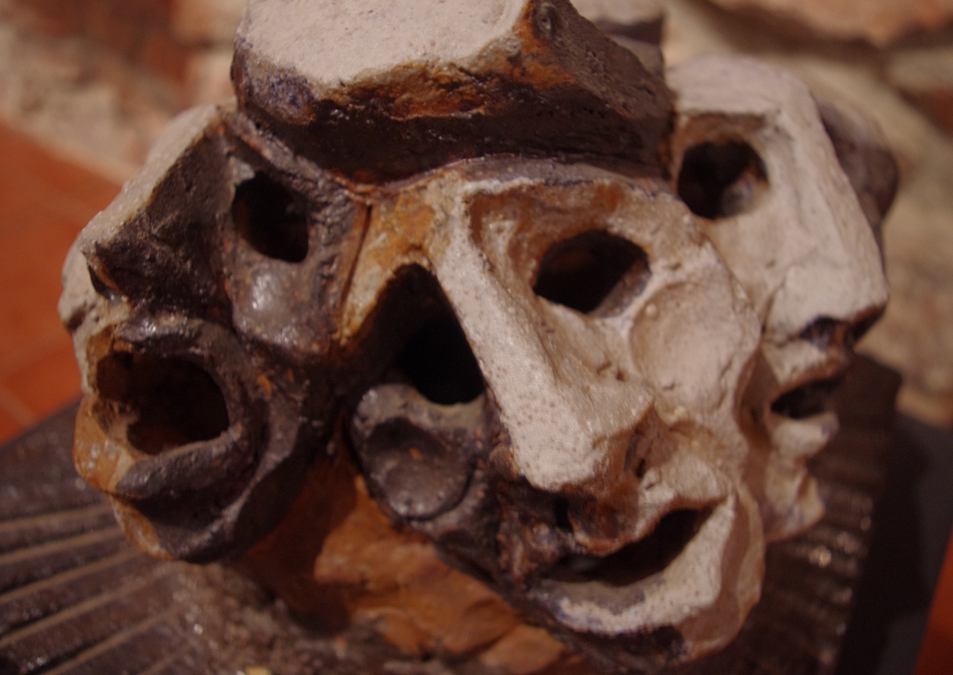 Però que és gent que s’assembla naturalment a les escultures que jo faig. Treballant amb fang també faig troballes. En dic troballes perquè quan pasto fang em surt gent sense buscar-la. A vegades vull fer coses i… per exemple: he de pastar fang per a fer un cap… el tinc remullat començo a pastar pim pam pim pam, vaig deixant pilots de fang, i… punyeta anant fent animalades i coses que em surten bim bam bim bam i el que havia de fer no ho he pogut fer… Torna a pastar fang i a no mirar el fang, perquè si el miro estic perdut.