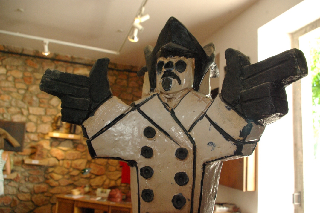 Vaig aprendre també ceràmica a l’Escola Industrial i allí també hi vaig anar 7 anys, perquè l’escultura sempre s’ha pintat. Des de que un alemany va trobar als porus del marbre les mihilines dels colors, vaig dir: «Noi! Para el carro! L’escultura s’ha de pintar!. I jo he pintat i he fet coses dins el concepte plàstic i pictòric de l’escultura. Ara tenim un forn a la Miloquera (la seva casa) i per tant procurem fer coses importants dins la característica plàstica, pictòrica i escultòrica.
